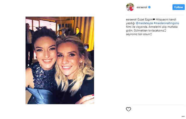 Esra Erol ise Ezgi Mola ile fotoğrafına "Ezgi Mola hikayesini kendi yazdığı #maideninaltıngünü filmi ile vizyonda. Annelerinizi alıp mutlaka gidin. Gülmekten kırılacaksınız" notu düşerek herkesi filmi izlemeye çağırdı.